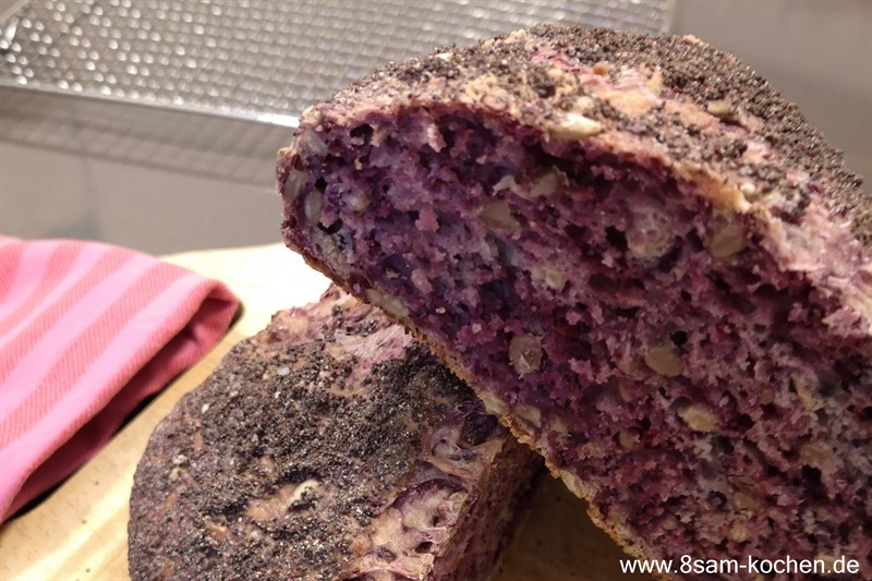 Was macht man eigentlich, wenn man ein schnelles Joghurtbrot mit orangen Möhren backen möchte man aber nur noch violette Möhren im Haus hat? Ganz klar man nimmt die Möhren, die da sind. Heraus kommt ein wunderschönes, leckeres, violettes Joghurtbrot. Und wenn man auch keine violetten Möhren hat, sucht man sich entweder ein anderes Gemüse wie z.B. Rote Bete oder Zucchini oder man lässt das Gemüse einfach weg. Ein Nachteil des Gemüse weglassen ist allerdings, dass das Brot nur halb so schön aussieht und nicht annähernd so saftig wird. Lecker ist es aber trotzdem. Schnell auf dem Tisch ist das Joghurtbrot mit und ohne Gemüse.
