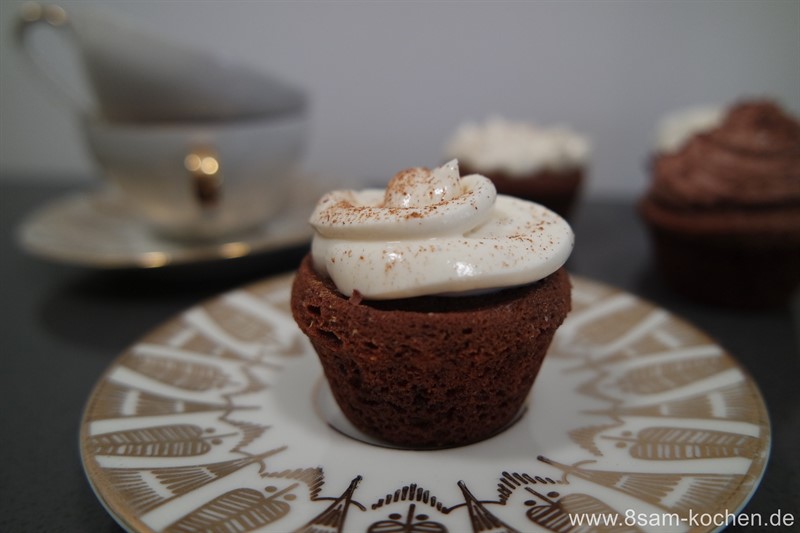 Mit oder ohne Frischkäse-Topping, diese Muffins sind auf jeden Fall ein Genuss und versüßen jeden noch so kalten Wintertag. Der Zimt gibt ihnen eine wärmende Note, Kakao und Schokolade sorgen für eine herbe Süße und das Frischkäse-Topping macht sie unwiderstehlich saftig. Schon beim Backen, wenn süßer schokoladiger Duft die Wohnung erfüllt, überkommt mich ein wohliger Schauer, der sich beim ersten Biss in den noch warmen Muffin tief in mir eingräbt. So fällt selbst auf verregnete Sonntagnachmittage ein wärmendes Licht.